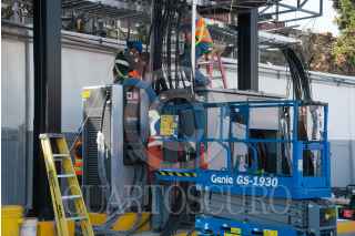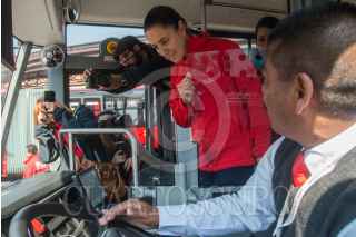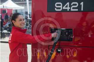 CIUDAD DE MÉXICO, 04FEBRERO2023.- Claudia Sheinbaum, jefa de Gobierno, realizó un recorrido de supervisión de la infraestructura eléctrica de recarga ubicada en Patio Júpiter para las 60 unidades eléctricas que operarán en la Línea 3 del Metrobús la cual registra un avance del 85 por ciento. La acompañaron: Andrés Lajous, secretario de Movilidad de la Ciudad de México; Rosario Castro, directora general del Metrobús; Adrián Aquino, superintendente de Zona Basílica CFE, Cristóbal; Juan Carlos Abascal Álvarez, director de soluciones de Movilidad Latam - Mobility ADO; José Luis Navarro, director general de ENEL México, y Francisco Chíguil Figueroa, alcalde de Gustavo A. Madero. FOTO: MARIO JASSO/CUARTOSCURO.COM