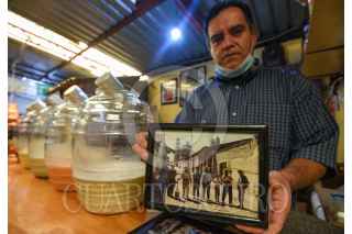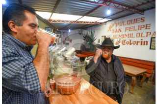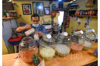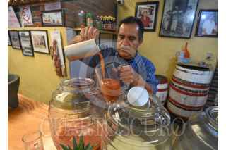 TOLUCA, ESTADO DE MÉXICO, 04FEBRERO2023.- Este 5 de febrero se celebra el Día Nacional del Pulque, una bebida de origen prehispánico que se obtiene del maguey, es la fermentación de lo que conocemos como el aguamiel. Los Pulques de San Felipe Tlalmimilolpan del Colorín tienen una tradición de más de 52 años, iniciando su historia en el centro de Toluca, lo que hoy en día es el Cosmovitral, que al realizarse la remodelación tiene que salir de esta zona y se la llevan a San Felipe Tlalmimilolpan, el iniciador es Felipe Orín actualmente se encuentra al frente su nieto César Muría, quien es la tercera generación en su familia que se dedica al pulque. Ofrecen sobre todo curados de frutas de temporada y de todo el año, como arándano, higo, frutos rojos, mango, mandarina, avena, piñón, almendra, apio, jitomate, guanábana, entre otros. El pulque que venden es de Huixquilucan y Villa Victoria y acuden a disfrutarlos familias completas que han encontrado en este lugar un espacio para convivir. Abren toda la semana y se encuentran ubicados en la calle Libertad núm. 14 en San Felipe Tlalmimilolpan en Toluca. Invitan a que dejen de lado los mitos de esta bebida y la prueben ya que parte de ser deliciosa tiene grandes propiedades. FOTO: CRISANTA ESPINOSA AGUILAR /CUARTOSCURO.COM