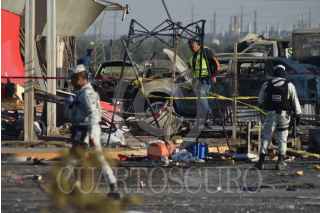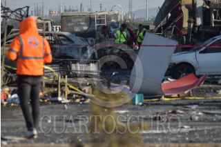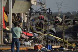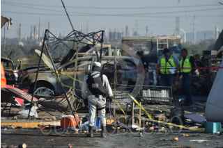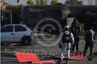 TULA, HIDALGO, 04FEBRERO2023.- El estallido de una pipa de gas en una gasolinera de Tula de Allende causó dos personas muertas y cuatro lesionadas, así como 10 vehículos calcinados, ocho bombas despachadoras siniestradas, daños en las oficinas de la estación de servicio, en dos establecimientos ubicados en el lugar, así como en domicilios cercanos. FOTO: FRANCISCO VILLEDA/CUARTOSCURO.COM