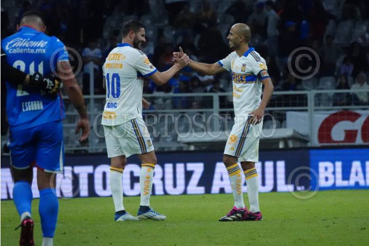 El equipo de Tigres lleva la delantera con 1-0 contra Cruz Azul durante el partido de la Jornada 5 Clausura 2023 en el Estadio Azteca