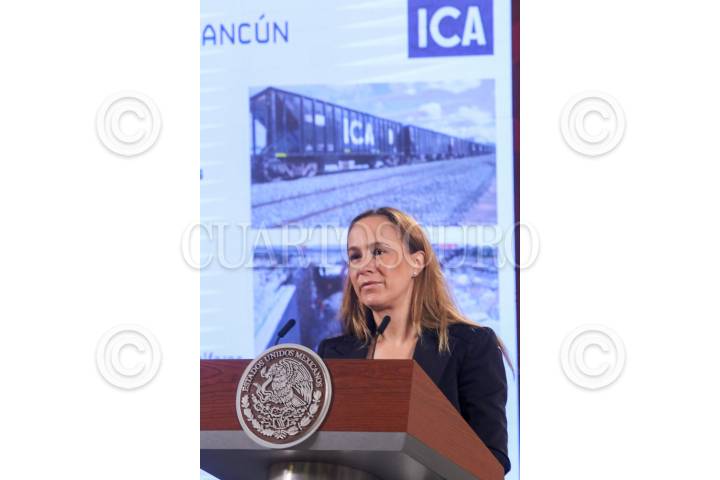 CIUDAD DE MÉXICO, 06FEBRERO2023.- Andrés Manuel López Obrador, Presidente de México; Ricardo Sheffield Padilla, titular de la Procuraduría Federal del Consumidor (Profeco); Guadalupe Phillips Margain, directora general de Empresas ICA; Javier May Rodríguez, director general del Fondo Nacional de Fomento al Turismo (Fonatur); María Luisa Albores González, secretaria de Medio Ambiente y Recursos Naturales; Diego Prieto Hernández, director general del Instituto Nacional de Antropología e Historia (INAH); Ariadna Montiel Reyes, secretaria de Bienestar; Jorge Nuño Lara, secretario de Infraestructura, Comunicaciones y Transportes; Luis Cresencio Sandoval González, secretario de la Defensa Nacional, y Blas Andrés Núñez Jordán, jefe del Centro Coordinador de Operaciones (CCO) del Tren Maya. Dirección General de Ingenieros de la Secretaría de la Defensa Nacional (Sedena), durante la mañanera en la cual se habló sobre los avances del Tramo 4 del Tren Maya, y del juicio de Genaro García Luna. FOTO: MOISÉS PABLO/CUARTOSCURO.CON