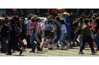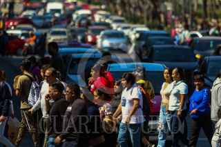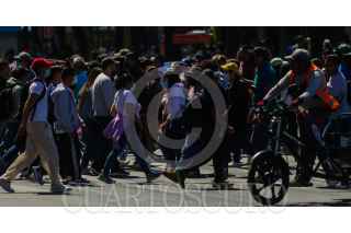 CIUDAD DE MÉXICO. 06FEBRERO2023.- Gente que descansa por el día feriado, acude a pasear al primer cuadro de la Ciudad. En avenida Juárez y esquina con Lázaro Cárdenas tráfico vehícular. FOTO: VICTORIA VALTIERRA/CUARTOSCURO.COM