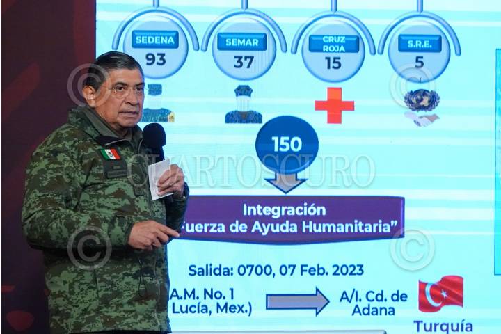 CIUDAD DE MÉXICO, 07FEBRERO2023.- Andrés Manuel López Obrador, presidente de México, en compañía del gabinete de seguridad integrado por: Rosa Icela Rodríguez, secretaria de Seguridad y Protección Ciudadana; Luis Cresencio Sandoval, secretario de la Defensa Nacional; Rafael Ojeda, secretario de Marina; Luis Rodríguez Bucio, subsecretario de Seguridad Ciudadana, y David Córdova Campos, comandante de la Guardia Nacional, presidieron la conferencia de prensa matutina para dar el informe en dicha materia. Se destacó el despliegue de efectivos en diferentes estados de la República, así como la envía de ayuda humanitaria a Turquía tras el sismo. FOTO: GALO CAÑAS/CUARTOSCURO.COM