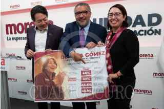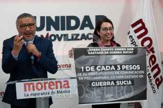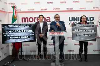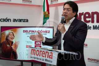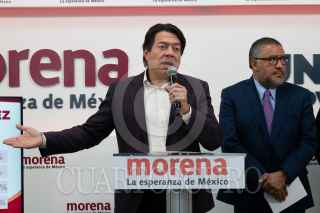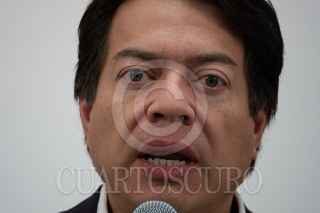 CIUDAD DE MÉXICO, 07FEBRERO2023.- Mario Delgado, presidente Nacional de Morena; Horacio Duarte, coordinador de campaña de Delfina Gómez, y Azucena Cisneros, diputada de Ecatepec, ofrecieron una conferencia de prensa en la CEN de Morena. FOTO: GRACIELA LÓPEZ /CUARTOSCURO.COM