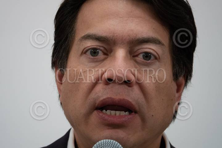 CIUDAD DE MÉXICO, 07FEBRERO2023.- Mario Delgado, presidente Nacional de Morena; Horacio Duarte, coordinador de campaña de Delfina Gómez, y Azucena Cisneros, diputada de Ecatepec, ofrecieron una conferencia de prensa en la CEN de Morena. FOTO: GRACIELA LÓPEZ /CUARTOSCURO.COM