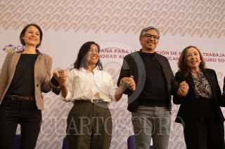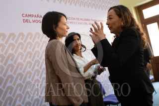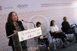 CIUDAD DE MÉXICO, 07FEBRERO2023.- Ingrid Gómez Saracíbar, titular de la Secretaría de las Mujeres de la Ciudad de México, encabezó la presentación de la campaña para la afiliación de mujeres trabajadoras del hogar al IMSS. FOTO: MOISÉS PABLO/CUARTOSCURO.COM