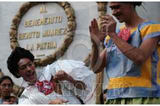 MÉXICO D.F. 17MARZO2007.- Performance sobre las "Dos Fridas" realizado en el Hemiciclo a Júarez, dentro del FMCH. FOTO: JEFTÉ ARGUELLO/CUARTOSCURO.COM