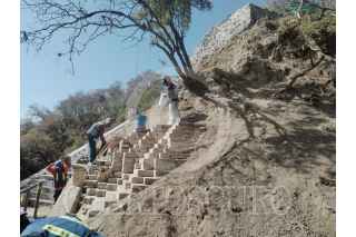 CHOLULA, PUEBLA, 07FEBRERO2023.- Los trabajos de restauración en la zona arqueológica de Cholula, correspondientes a la escalinata del Pocito, arrojaron hallazgos arqueológicos que se identificaron como el relleno de la quinta etapa del basamento, fechada hacia finales del periodo Clásico en esta región, comprendido entre el año 100 y 600 de esta era en común. Este descubrimiento evidencia los procesos usados por los cholultecas para la expansión de la edificación. FOTO: INAH/CUARTOSCURO.COM