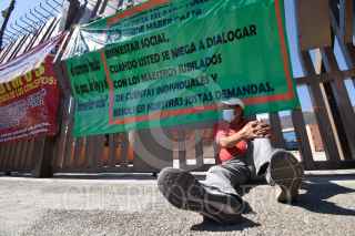 CHILPANCINGO, GUERRERO, 07FEBRERO2023.- Maestros jubilados de la Secretaría de Educación Pública (SEP) protestaron en el acceso principal del Recinto Oficial del Poder Ejecutivo de Guerrero para exigir la intervención de la gobernadora Evelyn Salgado Pineda para que la Federación les pague los adeudos de prestaciones pendientes desde el 2019. Gloria Salazar Sánchez, a nombre de los jubilados y pensionados del sector Cuentas Individuales de la SEP, denunció que desde hace por lo menos 5 meses han solicitado a la gobernadora que los reciba para exponerle sus demandas. Explicó que desde el 2019 hay maestros que no reciben los beneficios de las prestaciones a las que tienen derecho y agregó que al gobierno del estado le compete intervenir ante las autoridades federales para cumplir con esos beneficios. FOTO: DASSAEV TÉLLEZ ADAME/CUARTOSCURO.COM