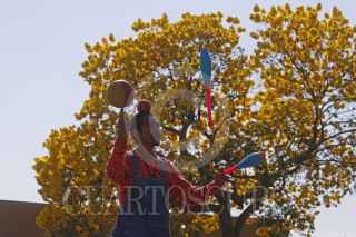 GUADALAJARA, JALISCO, 08FEBRERO2023.- Martín García es un joven que se dedica a realizar malabares en algunos cruceros de la ciudad, esto como forma de vida, para llevar el sustento a casa, pero a parte se prepara constantemente con cursos y talleres para sobresalir en la profesión que lleva a cabo y tiene la esperanza de sobresalir como malabarista. FOTO: FERNANDO CARRANZA GARCIA / CUARTOSCURO.COM