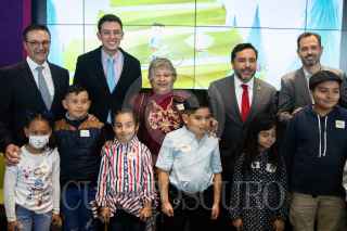 CIUDAD DE MÉXICO, 08FEBRERO2023.- Arturo Reyes Sandoval; director del IPN; Carlos Brito Lavalle, director del ONCE; Martha Velda Hernández Moreno, subsecretaria de Educación Básica, y Enrique Cornish Stanton, Director de Educación Financiera y Marketing de BBVA México, durante la presentación del programa "Ahorrando Ando", que se transmitirá por el canal Once, y enseñara educación financiera para niños. FOTO: MOISÉS PABLO/CUARTOSCURO.COM