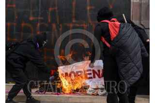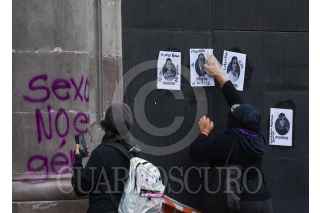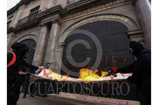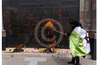 TOLUCA, ESTADO DE MÉXICO, 08FEBRERO2023.- Feministas Radicales Abolicionistas y la Resistencia Radical Edoméx salieron a las calles de Toluca se manifestaron en contra del borrado jurídico de las mujeres, rechazan la ley de Identidad de Género, así como se legisle a favor de las Infancias Trans, llegaron frente a la Cámara de Diputados en donde quemaron algunos carteles y mantas. FOTO: CRISANTA ESPINOSA AGUILAR /CUARTOSCURO.COM