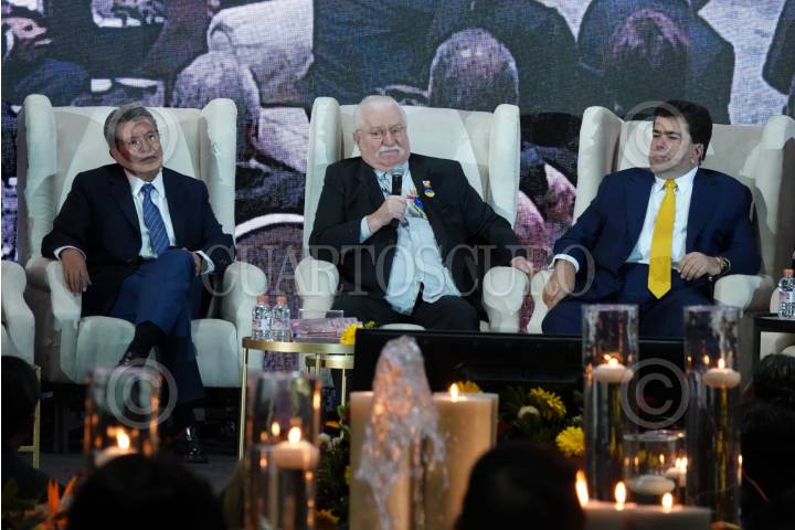 CIUDAD DE MÉXICO, 08FEBRERO2023.- Sergio Sarmiento, periodista y escritor; María Teresa Jiménez Esquivel, gobernadora Aguascalientes; Ricardo Monreal, coordinador de la JUCOPO; Lech Walesa, premio Nobel de la Paz; el autor Pedro Haces Barba; Miguel Ángel Navarro, gobernador de Nayarit y el editor Miguel Ángel Porrúa, encabezaron la presentación del libro "Breve crónica del sindicalismo en México" realizado en el Museo Interactivo de Economía (MIDE). FOTO: GRACIELA LÓPEZ /CUARTOSCURO.COM