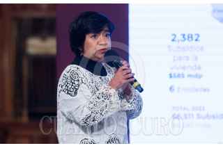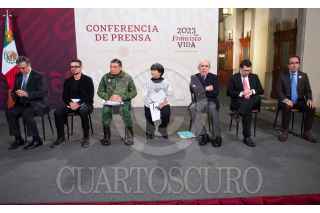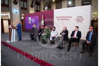 CIUDAD DE MÉXICO, 09FEBRERO2023.- Andrés Manuel López Obrador, presidente Constitucional de los Estados Unidos Mexicanos en conferencia de prensa matutina en el Salón Tesorería de Palacio Nacional. Lo acompañaron Marcelo Ebrard Casaubon, secretario de Relaciones Exteriores; Román Meyer Falcón, secretario de Desarrollo Agrario, Territorial y Urbano; Luis Cresencio Sandoval González, secretario de la Defensa Nacional; Edna Elena Vega Rangel, subsecretaria de Ordenamiento Territorial y Agrario; Pablo Gómez Álvarez, titular de la Unidad de Inteligencia Financiera (UIF) de la Secretaría de Hacienda y Crédito Público (SHCP); Carlos Martínez Velázquez, director general del Instituto del Fondo Nacional de la Vivienda para los Trabajadores y César Buenrostro Moreno, vocal ejecutivo del Fondo de Vivienda del Instituto de Seguridad y Servicios Sociales para los Trabajadores del Estado. FOTO: PRESIDENCIA/CUARTOSCURO.CON