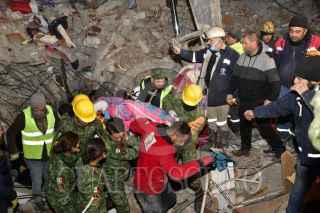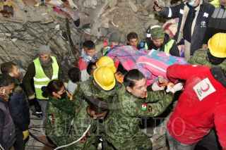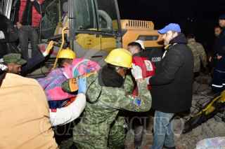 ADANA, TURQUÍA, 09FEBRERO2023.- El cuerpo de apoyo de elementos de la Secretaria de la Defensa Nacional (SEDENA) lograron el primer rescate de una persona con vida entre escombros de un edificio derrumbado tras los sismos que azotaron la entidad fronteriza con Siria. FOTO: SEDENA/CUARTOSCURO.COM