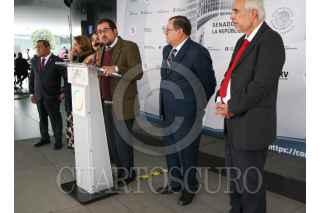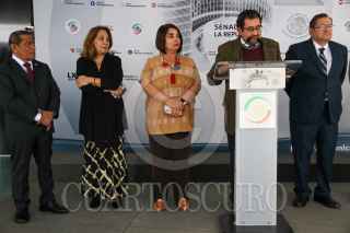 CIUDAD DE MÉXICO. 09FEBRERO2023.- La bancada del partido Morena en el Senado, César Cravioto y Antares Vázquez, en conferencia de prensa. FOTO: VICTORIA VALTIERRA/CUARTOSCURO.COM