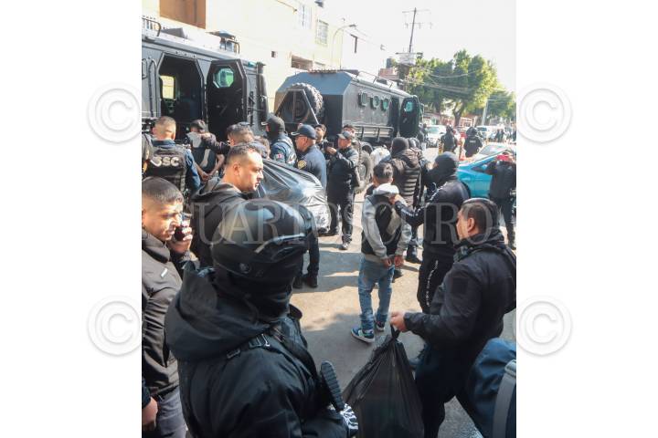 CIUDAD DE MÉXICO, 09FEBRERO2023.- Policías atrapan a dos hombre cunado tiraban el cuerpo de una mujer en un basurero clandestino en la calle de Jarcería, en la colonia Morelos. Tras detener a estos sujetos catearon una vecindad de donde salieron estos hombre con el cadáver de la mujer, quien presentaba golpes en su rostro. Elementos de la Secretaría de Seguridad Ciudadana detuvieron a siete sujetos y varias armas de alto poder. FOTO: ROGELIO MORALES/CUARTOSCURO.COM