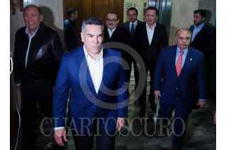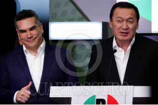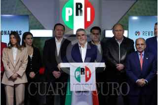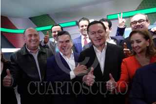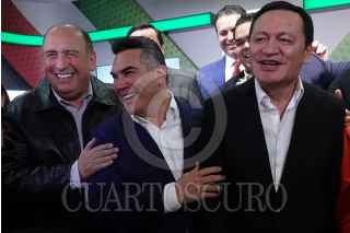 CIUDAD DE MÉXICO, 09FEBRERO2023.- Alejandro Moreno Cárdenas, presidente nacional del Partido Revolucionario Institucional (PRI), Miguel Ángel Osorio Chong, coordinador del PRI en el senado, y Rubén Moreira, coordinador de la bancada priísta en la Cámara de Diputado, encabezaron la conferencia de prensa en las inmediaciones del Comité Ejecutivo Nacional (CEN) tras sostener la reunión con el presidente grupo parlamentario del partido. Entre los temas destacó el apoyo por parte de Moreno Cárdenas hacia el coordinador Osorio Chong, así como un acuerdo para continuar trabajando y ganar en las elecciones de Coahuila y Estado de México. FOTO: GALO CAÑAS/CUARTOSCURO.COM