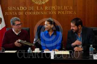CIUDAD DE MÉXICO, 10FEBRERO2023.- Ricardo Monreal, presidente de la Junta de Coordinación Política del Senado; Miguel Ángel Mancera, coordinador del Partido de la Revolución Democrática (PRD); Germán Martínez Cázares, senador del Grupo Plural, y Josefina Vázquez Mota, senadora del Partido Acción Nacional (PAN), sostuvieron una reunión con representantes de Colectivos de la Sociedad Civil para la discusión del Plan B de la Reforma Electoral. FOTO: GALO CAÑAS/CUARTOSCURO.COM