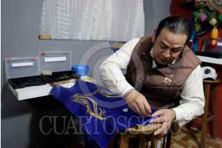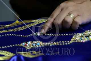 PUEBLA, PUEBLA, 10FEBRERO2023.- La familia Pérez Montes continúa trabajando en la fabricación de trajes que serán utilizados en el Carnaval de Huejotzingo. Ellos se enfocan en la innovación y originalidad de cada uno de los diseño que elaboran. FOTO: MIREYA NOVO/CUARTOSCURO.COM