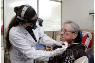 CIUDA DE MÉXICO, 11FEBRERO2023.- Mediante la colocación de una prótesis fonatoria (Blom-Singer), pacientes del Instituto Mexicano del Seguro Social (IMSS) con cáncer de laringe y a quienes se realizó extirpación de este órgano (laringectomía), logran recuperar su voz con mayor rapidez y en un tono similar al natural.Silvio Jurado Hernández, jefe del Departamento Clínico de Otorrinolaringología de la UMAE HG “Dr. Gaudencio González”, del CMN La Raza, dijo que el dispositivo permite el manejo seguro de la vía aérea del paciente y señaló que el Departamento Clínico de Otorrinolaringología de este hospital es la sede que más número de laringectomías realiza dentro del IMSS en el país, con entre 14 y 18 por año. FOTO: IMSS/CUARTOSCURO.COM