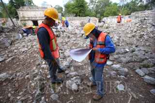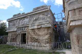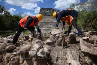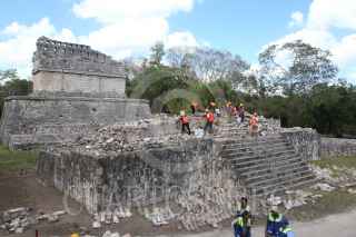 CHICHEN ITZÁ, PISTE, YUCATÁN, 11FEBRERO2023.- A unos 800 metros del castillo principal de esta zona arqueológica se encuentra el grupo conocido como Serie Inicial, un espacio que se encuentra cerrado al público y en el cuál empleados del Instituto Nacional de Antropología e Historia (INAH) realizando trabajos de exploración, mantenimiento y restauración del sitio conocido como la “Vieja Chichen Itzá”. El arqueólogo José Francisco Osorio León, comentó que se ha encontrado infinidad de elementos decorativos que se asocian cada vez más a las actividades y rituales que hacía el gobernante que residía en el Palacio de los Falos de esta Serie Inicial. La zona pertenece al periodo Postclásico de los años 800 a 1,050 y se trabaja desde hace unos 10 años, los equipos espera que el próximo año pueda ser abierta al público. FOTO: MARTÍN ZETINA/CUARTOSCURO.COM