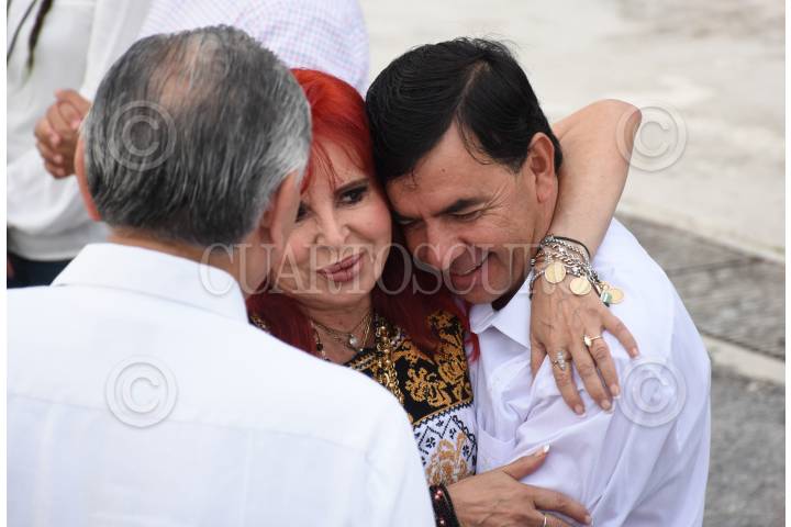 CAMPECHE, CAMPECHE, 11FEBRERO2023.- El Presidente Andrés Manuel López Obrador recibió al mandatario de Cuba Miguel Diaz-Canel en el Aeropuerto Internacional de Campeche, Ing. Alberto Acuña Ongay. El presidente cubano realiza su tercera visita a México y primera en Campeche. En la bienvenida estuvieron presentes: Layda Sansores San Román, Gobernadora de Campeche; Marcelo Ebrard Casaubon, secretario de Relaciones Exteriores; Adán Augusto López Hernández, secretario de Gobernación; Luis Cresencio Sandoval González, secretario de la Defensa Nacional; José Rafael Ojeda Durán, secretario de Marina; Miguel Díaz Reynoso, embajador de México en Cuba. FOTO: MICHAEL BALAM/CUARTOSCURO.COM