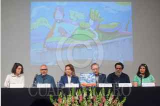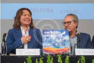 CIUDAD DE MÉXICO, 11FEBRERO2023.- Lucina Jiménez, directora general del INBAL; Cástulo de la Rocha, presidente de AltaMed Health Services; Mariana Munguía, coordinadora de Artes Visuales, y los artistas Ever Velázquez y Roberto Gil De Montes, encabezaron la presentación del catálogo de la exposición “Construyendo puentes en épocas de muros. Arte chicano/mexicano de Los Ángeles a México” llevada a cabo en la sala Manuel M. Ponce del Palacio de Bellas Artes. FOTO: MARIO JASSO/CUARTOSCURO.COM
