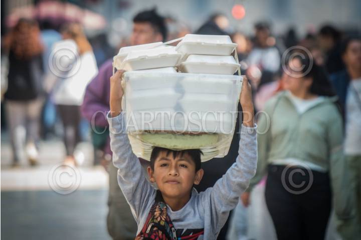 CIUDAD DE MÉXICO, 11FEBRERO2023.- Un joven observa fijamente a un muñeco mientras permanece sentado sobre avenida Francisco I. Madero en el centro histórico. FOTO: MARIO JASSO/CUARTOSCURO.COM