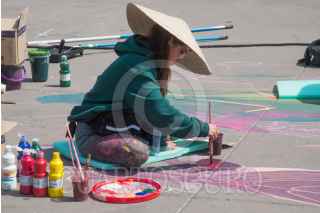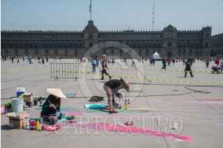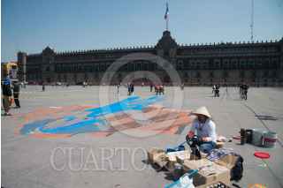 CIUDAD DE MÉXICO, 11FEBRERO2023.- Artistas urbanos comenzaron a trazar sus intervenciones visuales en la plancha del zócalo como parte de la muestra de arte urbano que se llevará a cabo el próximo 14 de febrero con motivo del día del amor y la amistad. Dicha muestra contará de cuatro pinturas realizadas con la técnica de arte madonnari. FOTO: MARIO JASSO/CUARTOSCURO.COM