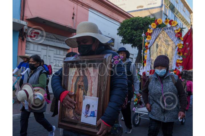 TOLUCA, ESTADO DE MÉXICO, 13FEBRERO2023.- Después de dos años se llevó de nueva cuenta la Peregrinación a Pie de la Arquidiócesis de Toluca rumbo a la Basílica de Guadalupe en su edición número 85, monseñor Raul Gómez González encabezó el contingente, con estandartes, imágenes de la Virgen de Guadalupe, Niño Dios los peregrinos avanzaron por las calles de Toluca, este día llegarán a Ocoyoacac en donde pernoctarán para mañana escuchar misa en la zona de La Marquesa y retomar su camino al Tepeyac. FOTO: CRISANTA ESPINOSA AGUILAR /CUARTOSCURO.COM