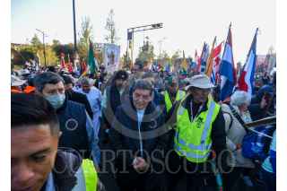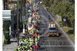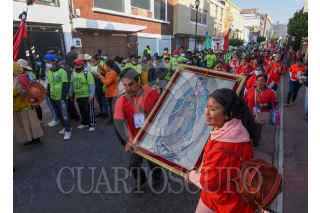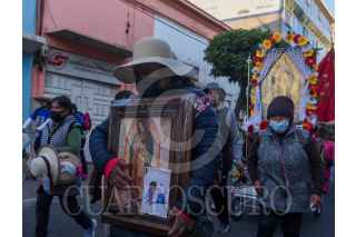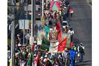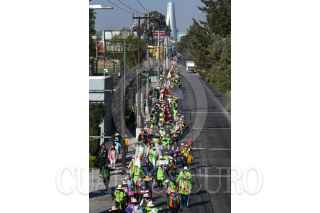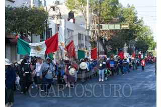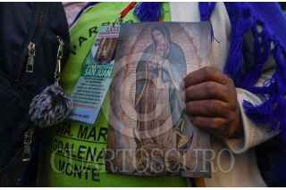 TOLUCA, ESTADO DE MÉXICO, 13FEBRERO2023.- Después de dos años se llevó de nueva cuenta la Peregrinación a Pie de la Arquidiócesis de Toluca rumbo a la Basílica de Guadalupe en su edición número 85, monseñor Raul Gómez González encabezó el contingente, con estandartes, imágenes de la Virgen de Guadalupe, Niño Dios los peregrinos avanzaron por las calles de Toluca, este día llegarán a Ocoyoacac en donde pernoctarán para mañana escuchar misa en la zona de La Marquesa y retomar su camino al Tepeyac. FOTO: CRISANTA ESPINOSA AGUILAR /CUARTOSCURO.COM