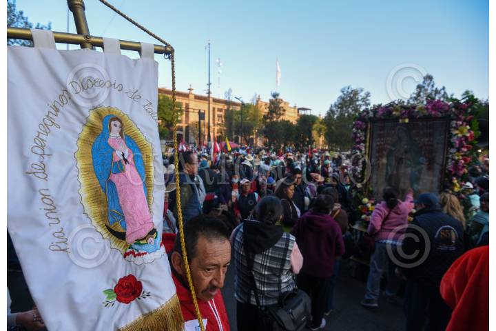 TOLUCA, ESTADO DE MÉXICO, 13FEBRERO2023.- Después de dos años se llevó de nueva cuenta la Peregrinación a Pie de la Arquidiócesis de Toluca rumbo a la Basílica de Guadalupe en su edición número 85, monseñor Raul Gómez González encabezó el contingente, con estandartes, imágenes de la Virgen de Guadalupe, Niño Dios los peregrinos avanzaron por las calles de Toluca, este día llegarán a Ocoyoacac en donde pernoctarán para mañana escuchar misa en la zona de La Marquesa y retomar su camino al Tepeyac. FOTO: CRISANTA ESPINOSA AGUILAR /CUARTOSCURO.COM