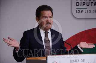 CIUDAD DE MÉXICO, 14FEBRERO2023.- Ignacio Mier, diputado y coordinador de Morena, y presidente de la Junta de Coordinación Política de la Cámara de Diputados (Jucopo) ofreció conferencia de prensa para informar el acuerdo a favor de dicho órgano político de la modificación de la convocatoria para la elección de consejeros electorales del Instituto Electoral Nacional (INE). FOTO: MARIO JASSO/CUARTOSCURO.COM