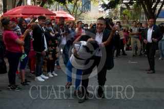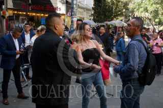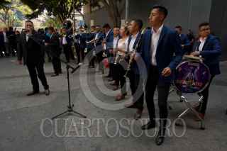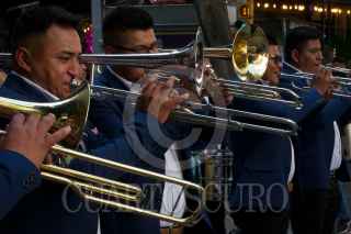 CIUDAD DE MÉXICO, 14FEBRERO2023.- En el marco de la celebración del Día del Amor y la Amistad se llevó acabo el concierto "Serenata con Banda" interpretada por la Banda Sinaloense de la Policía Bancaria e Industrial en el cruce de la calle Génova y Liverpool de la colonia Juárez de la alcaldía Cuauhtémoc. FOTO: ROGELIO MORALES /CUARTOSCURO.COM