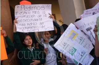 XALAPA, VERACRUZ, 15FEBRERO2023.- ¡Queremos escuela digna!, gritaron estudiantes de la telesecundaria “Frida Kahlo” ubicada en el municipio de Naolinco, en una manifestación en la plaza Lerdo de la capital. Los profesores denunciaron que los alumnos deben tomar clases en viviendas deshabitadas del fraccionamiento porque no tienen servicios en las aulas. FOTO: YERANIA ROLÓN/CUARTOSCURO.COM