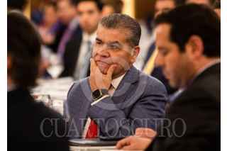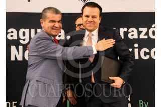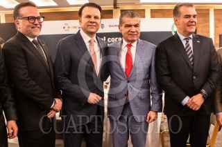 CIUDAD DE MÉXICO, 16FEBRERO2023.- Los Gobernadores de Coahuila, Miguel Ángel Riquelme y de Durango Esteban Villegas; en la presentación del programa Invest In La Laguna, que se anunció esta tarde en el Club de Industriales de Polanco. También estuvieron presentes Luis Tellez, Jorge Pérez coordinador de Invest y Francisco Cervantes del Consejo Coordinador Empresarial. FOTO: VICTORIA VALTIERRA/CUARTOSCURO.COM