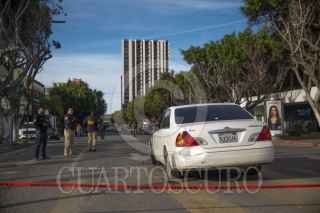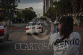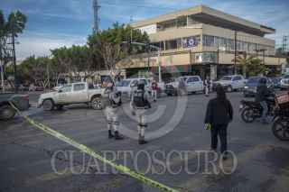 TIJUANA BAJA CALIFORNIA, 16FEBRERO2023.- Una persecución por parte de elementos de la Fiscalía General del Estado culminó en balacera sobre la avenida Revolución. Un vehículo tipo Toyota Avaló XL, color blanco con placas de California con los neumáticos ponchados, fue abandono sobre la avenida entre la calle 9 y calle 8 de la zona centro. Un fuerte operativo se llevó a cabo por parte de distintas corporaciones por las calles aledañas, dando como positivo con la detención de una persona.De acuerdo a información extraoficial se habla también sobre el decomiso de algunas armas largas y cortas que portaba el responsable. La calle 9 y la avenida Revolución se encuentran parcialmente cerradas por elementos del Ejercito Mexicano. FOTO: OMAR MARTÍNEZ/ CUARTOSCURO.COM
