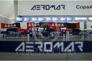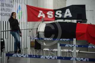 CIUDAD DE MÉXICO, 17FEBRERO2023.- Segundo día de huelga por parte de trabajadores de Aeromar con apoyo de los sindicatos: Asociación Sindical de Sobrecargos de Aviación (ASSA) y Asociaciones Sindicales México, tras el anuncio del cierre definitivo de operaciones de Aeromar. FOTO: MARIO JASSO/CUARTOSCURO.COM