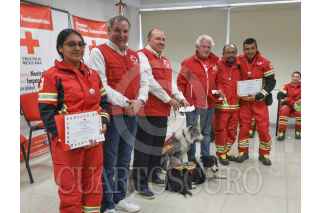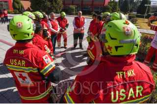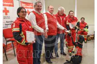 TOLUCA, ESTADO DE MÉXICO, 17FEBRERO2023.- Fernando Suinaga Presidente Nacional de Cruz Roja Mexicana acompañado por Jorge Forastieri Consejero Nacional y Delegado del Estado de México entregaron reconocimientos a los 15 rescatistas y 4 binomios caminos que viajaron a Turquía, país afectado por un terremoto, en donde realizaron labores de búsqueda y apoyo a los afectados. FOTO: CRISANTA ESPINOSA AGUILAR /CUARTOSCURO.COM