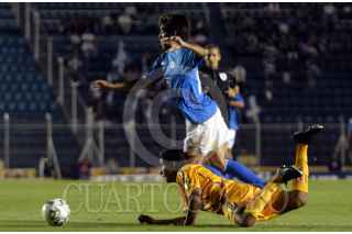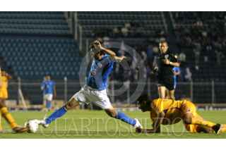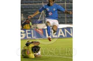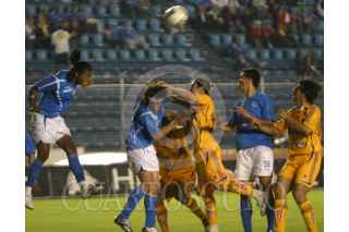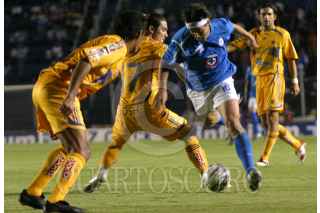 MÉXICO, D.F., 21MARZ0O2007.- Grabriel Pereyra, delantero del Cruz Azul, dribla a varios jugadores de los Tigres, durante el encuentro que disputaron en el Estadio Azul. FOTO: MOISÉS PABLO/CUARTOSCURO.COM