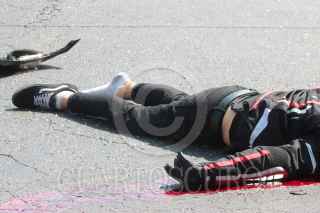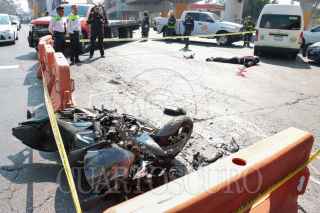 TLALNEPANTLA, ESTADO DE MÉXICO, 17FEBRERO2023.- Muere un joven motociclista al estrellarse contra una unidad de Transporte Público de pasajeros en la avenida Mario Colin y calle de Toltecas en el municipio de Tlalnepantla. FOTO: ROGELIO MORALES/CUARTOSCURO.COM