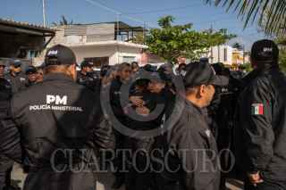BOCA DEL RIO,VERACRUZ ,18FEBRERO2023.- Elementos de la policía ministerial rindieron homenaje a Farets González Grajeda, de 34 años, quien murió en el hospital luego de ser herido durante un enfrentamiento con arma de fuego derivado de un fuerte operativo en Paso del Toro, Medellín de Bravo, Veracruz. Dicho operativo tuvo como resultado la detención de 7 personas vinculadas a una nueva banda delictiva. FOTO: VICTORIA RAZO/CUARTOSCURO.COM