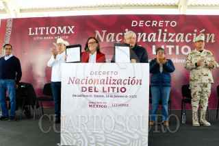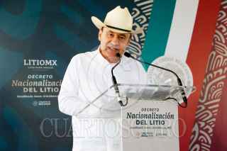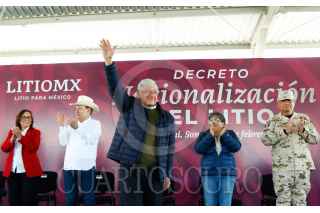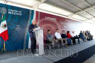 BACADÉHUACHI, SONORA, 18FEBRERO2023.- Andrés Manuel López Obrador, presidente de México, encabezó la ceremonia con motivo de la firma del Decreto sobre nacionalización del litio, en la Escuela Secundaria "Mario Barceló Abril", del municipio. El mandatario estuvo acompañado de: Jesús Ramírez Cuevas, coordinador general de Comunicación Social y vocero del Gobierno de la República; Pablo Daniel Taddei Arriola, director general de Litio para México; Rogelio Ramírez de la O, secretario de Hacienda y Crédito Público; Rocío Nahle García, secretaria de Energía; Alfonso Durazo Montaño, gobernador Constitucional del Estado de Sonora; Raquel Buenrostro Sánchez, secretaria de Economía; Luis Cresencio Sandoval González, secretario de la Defensa Nacional; Jorge Nuño Lara, Secretario de Infraestructura Comunicaciones y Transportes; Juan Pablo de Botton Falcón, subsecretario de Egresos de la Secretaría de Hacienda y Crédito Público y Luis Alfonso Sierra Villaescusa, presidente Municipal de Bacadéhuachi. FOTO: PRESIDENCIA/CUARTOSCURO.COM