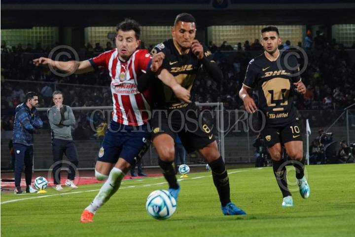 CIUDAD DE MÉXICO, 18FEBRERO2023.- El equipo de las Chivas de Guadalajara derrotó a los Pumas con 2-1 durante la Liga MX Jornada 8 Clausura 2023 en el Estadio Olímpico. FOTO: GRACIELA LÓPEZ /CUARTOSCURO.COM