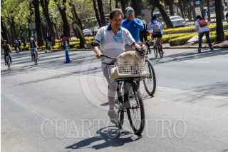 CIUDAD DE MÉXICO, 19FEBRERO2023.- Hombre pasea con su amigo, un perro pug, en bicicleta sobre avenida Reforma. FOTO: MOISÉS PABLO/CUARTOSCURO.COM