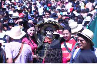 TEPOZTLÁN, MORELOS, 19FEBRERO2023.- Miles de turistas llenan las calles del pueblo mágico de Tepoztlán, donde la venta y consumo de alcohol en la vía pública no tiene restricción alguna. Las comparsas de chínelos de los barrios que participan en el carnaval de este año no culminaron su recorrido en el zócalo del pueblo pues los organizadores reclamaron la falta de seguridad. FOTO: MARGARITO PÉREZ RETANA / CUARTOSCURO.COM