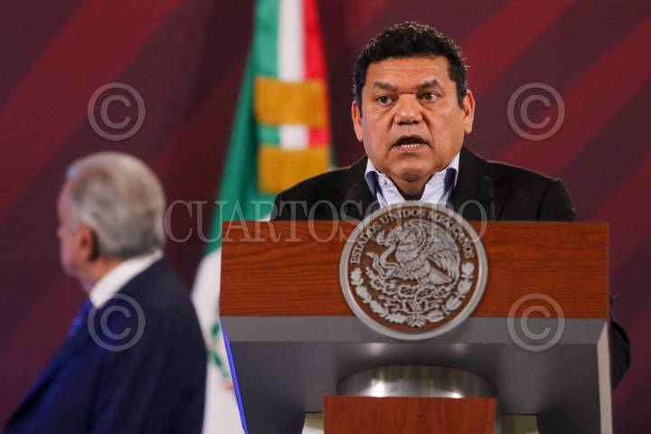 CIUDAD DE MÉXICO, 20FEBRERO2023.- Andrés Manuel López Obrador, Presidente de México; Claudia Sheinbaum Pardo, Jefa de Gobierno de la Ciudad de México; Alfredo del Mazo Maza, Guerrero Berna Gobernador del Estado de México; Julio Ramón Menchaca Salazar, Gobernador del Estado de Hidalgo; Mara Lezama Espinosa, Gobernadora del Estado de Quintana Roo; María Luisa Albores González, secretaria de Medio Ambiente y Recursos Naturales; Ariadna Montiel Reyes, Secretaria de Bienestar; Jorge Nuño Lara, Secretario de Infraestructura, Comunicaciones y Transportes; Javier May Rodríguez, Director General del Fondo Nacional de Fomento al Turismo (Fonatur); Diego Prieto Hernández, director general del Instituto Nacional de Antropología e Historia (INAH); Ricardo Sheffield Padilla, titular de la Procuraduría Federal del Consumidor (Profeco); Gustavo Ricardo Vallejo, Ingeniero Residente General de la Dirección de Ingenieros; Isidoro Pastor Román, director general del Aeropuerto Internacional "Felipe Ángeles" (AIFA), y Maite Ramos Gómez, directora de Alstom México, durante la mañanera en la cual se habló del Tramo 5 del Tren Maya y de los accesos metropolitanos hacia el AIFA. FOTO: MOISÉS PABLO/CUARTOSCURO.COM