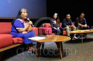 CIUDAD DE MÉXICO, 20FEBRERO2023.- Viridiana García, Unesco México; Manuel Vega, creativo de Bombay; José Aguilar, director de Racismo MX, y Odilia Romero, defensora de los derechos humanos de personas indígenas y migrantes, durante el lanzamiento de la campaña "Revolución vs El Algoritmo", como mecanismo de luchar contra el racismo en internet, en el Centro de Cultura Digital. Durante el evento mostraron un documental en el que se expone como el algoritmo de los buscadores de internet perpetúa la discriminación y los estereotipos contra determinados colectivos. FOTO: MOISÉS PABLO/CUARTOSCURO.COM