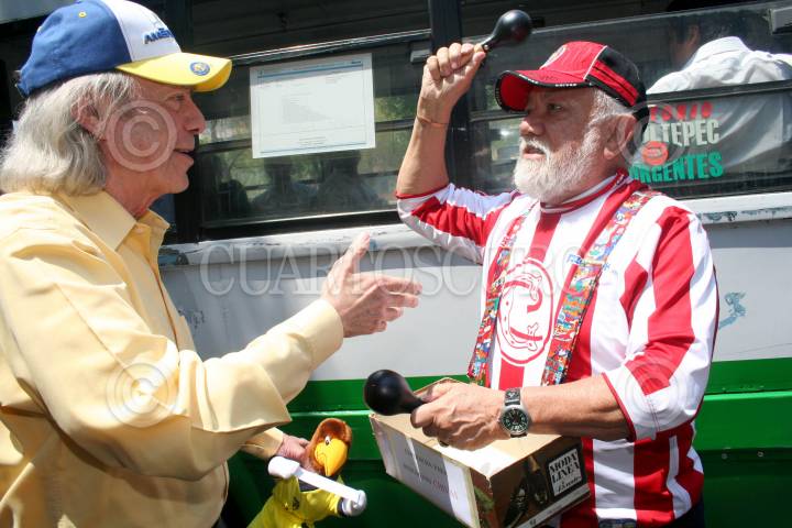 MÉXICO, D.F., 22MARZO2007.- Sergio Corona acudió a metro Chapultepec a pagar la apuesta que perdió por el más reciente clásico del futbol mexicano, América-Chivas. FOTO: ISAAC ESQUIVEL/CUARTOSURO.COM